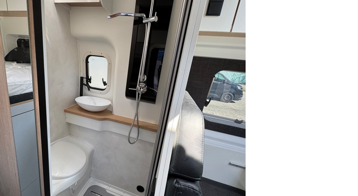 • Salle d’eau avec douche, WC cassette, baie et lanterneau